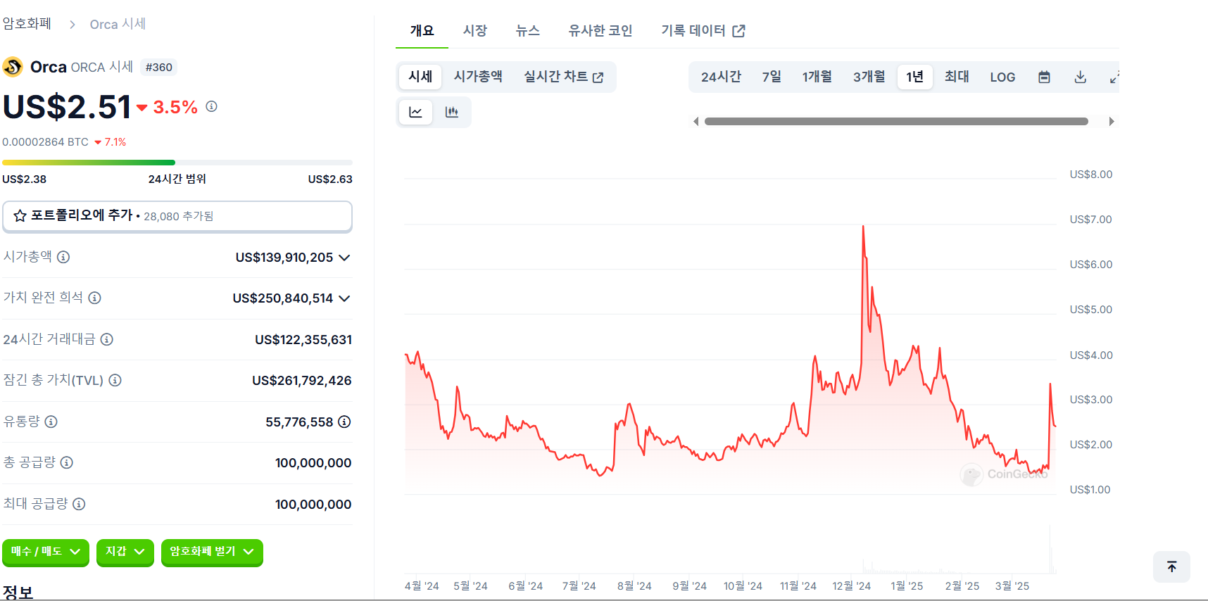오르카 코인 최근 1년 ~ 오늘 시세